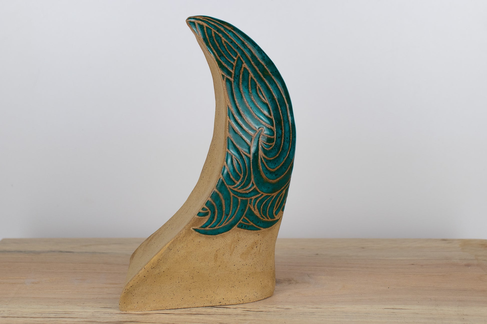 - Finish: Glossy glaze on outside with detailed etching