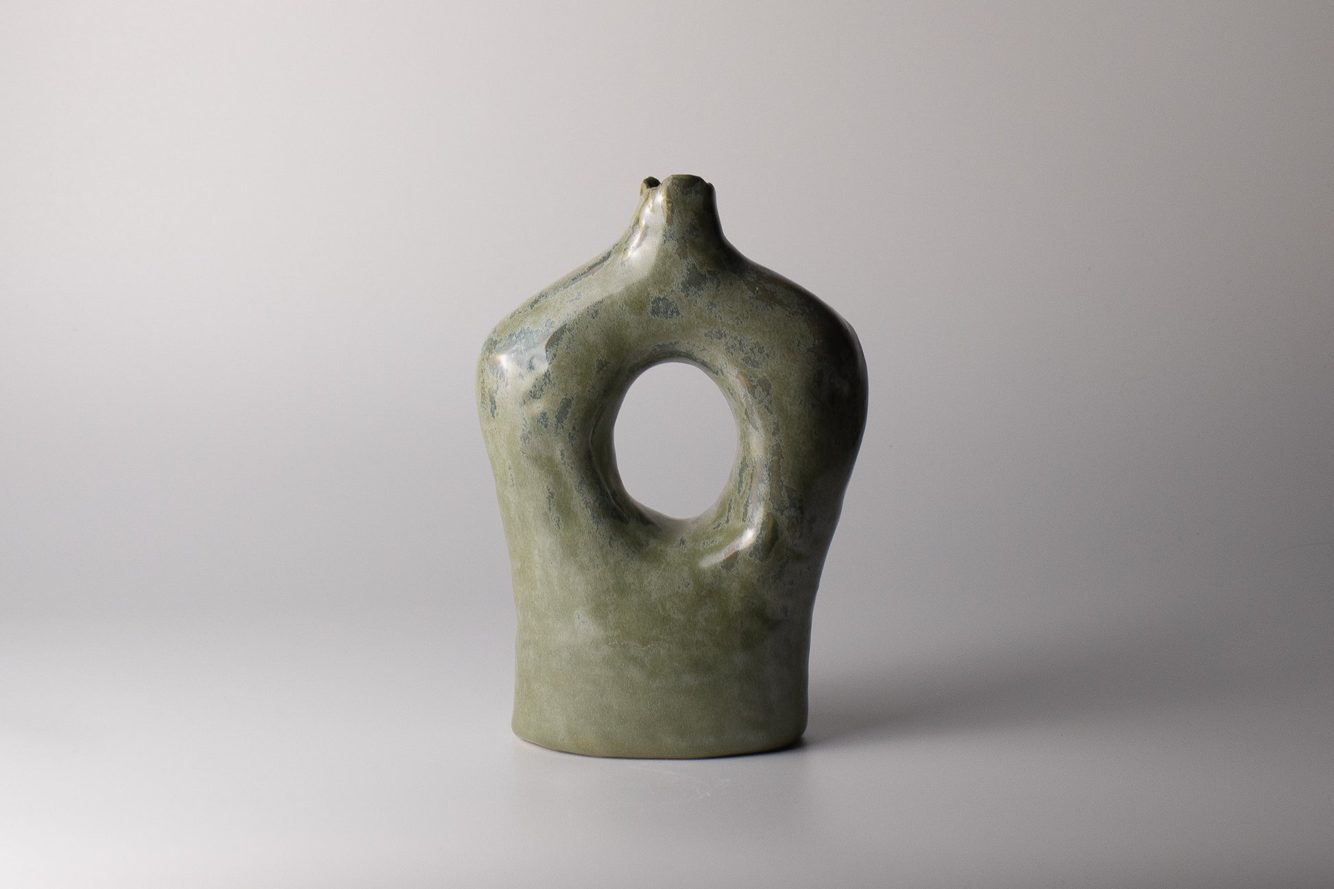- Glossy green glaze with variation