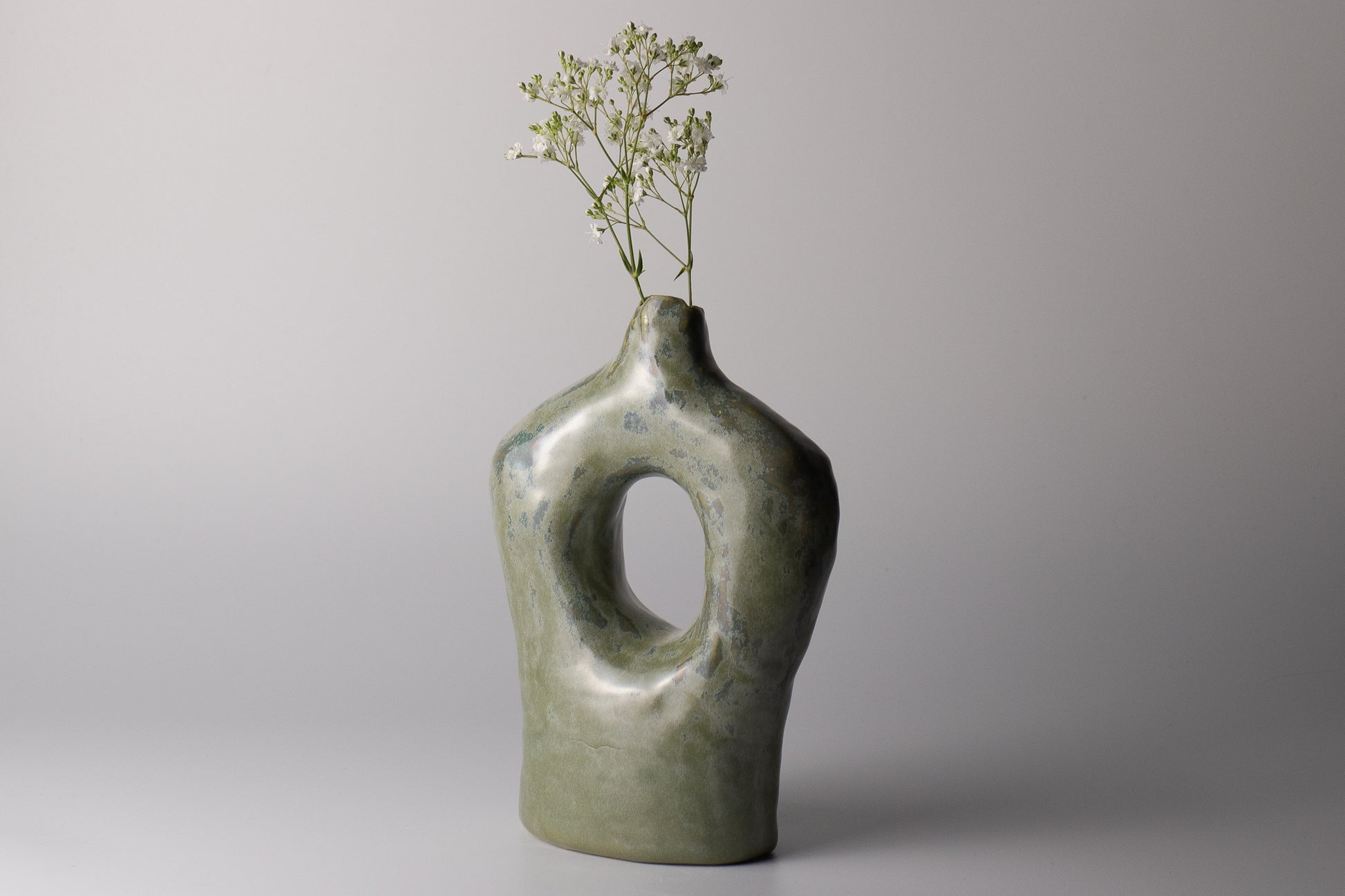 A modern vessel with organic lines, soft curves, and a central opening that brings lightness and balance to the form.